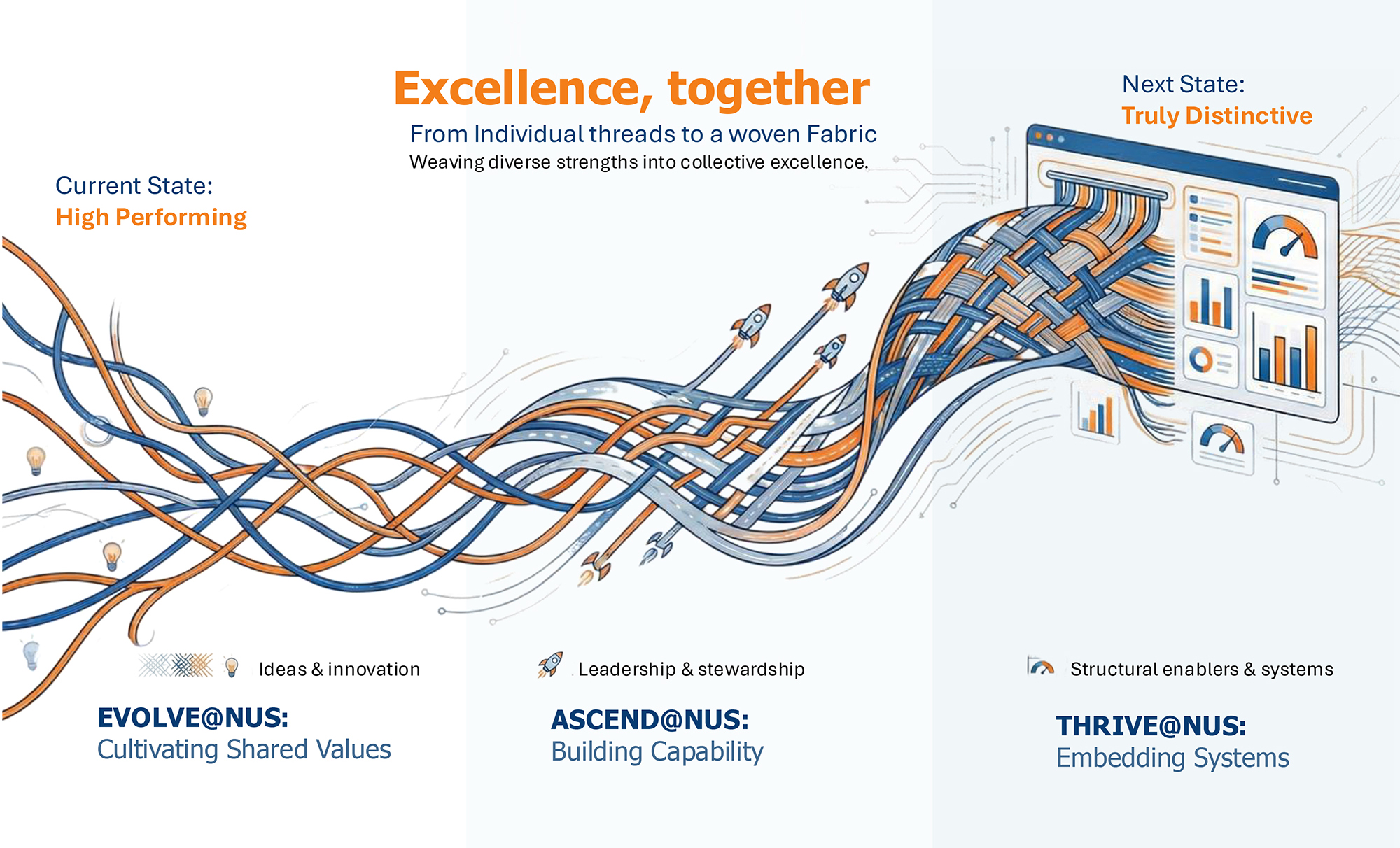 At NUS, excellence is a shared endeavour. strengthen culture, grow leaders and build enabling structures—so our community can advance knowledge and society, grounded in people, teamwork and shared success.